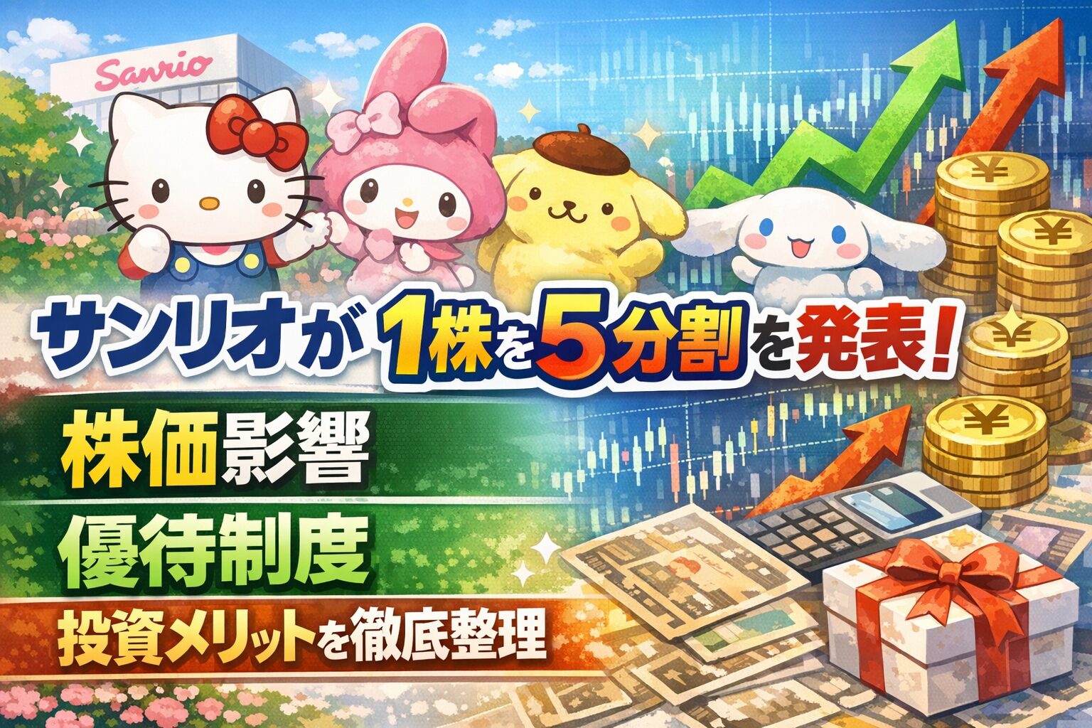 【サンリオが1株を5分割を発表】株価影響・優待制度・投資メリットを徹底整理