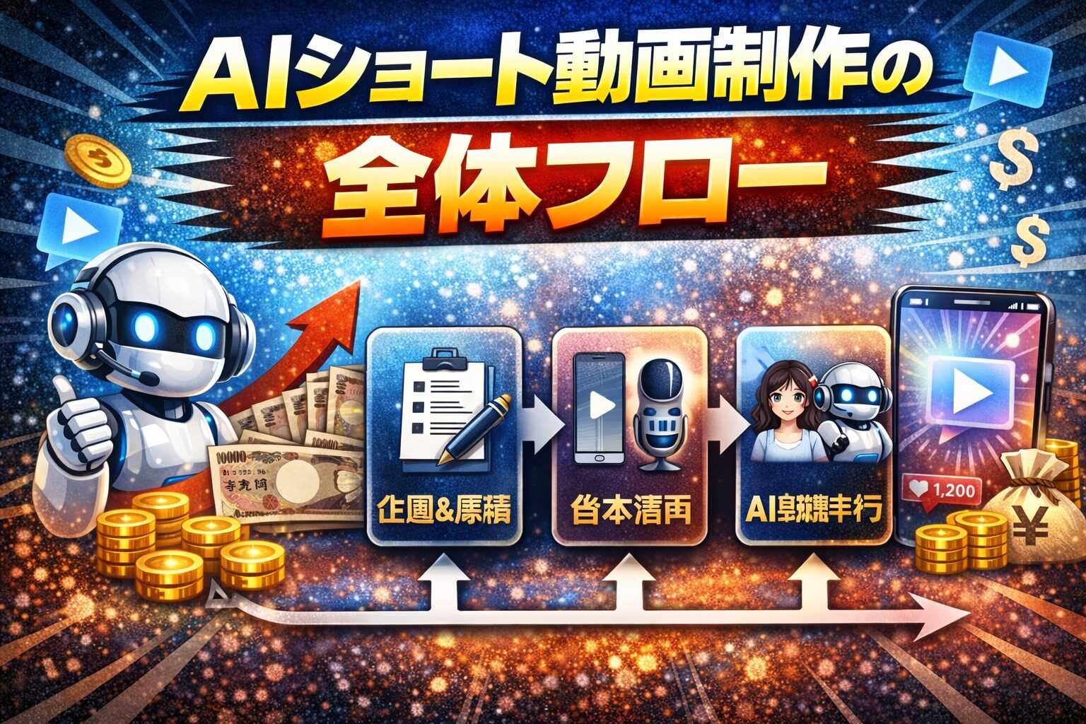 AI副業でショート動画を使って稼ぐために、ChatGPTで台本を作り、音声を作り、動画素材を作り、編集で一本にまとめ、投稿して収益モデルへ接続するまでの手順を、再現可能な型として提供します。