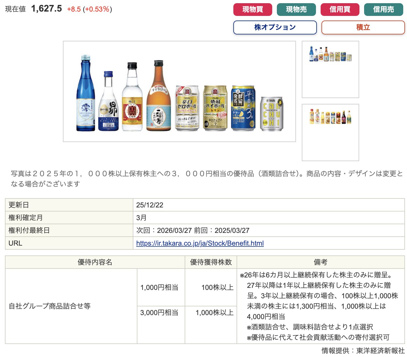 ウイスキーやチューハイの優待は、嗜好がはっきり分かれる分野でもあります。