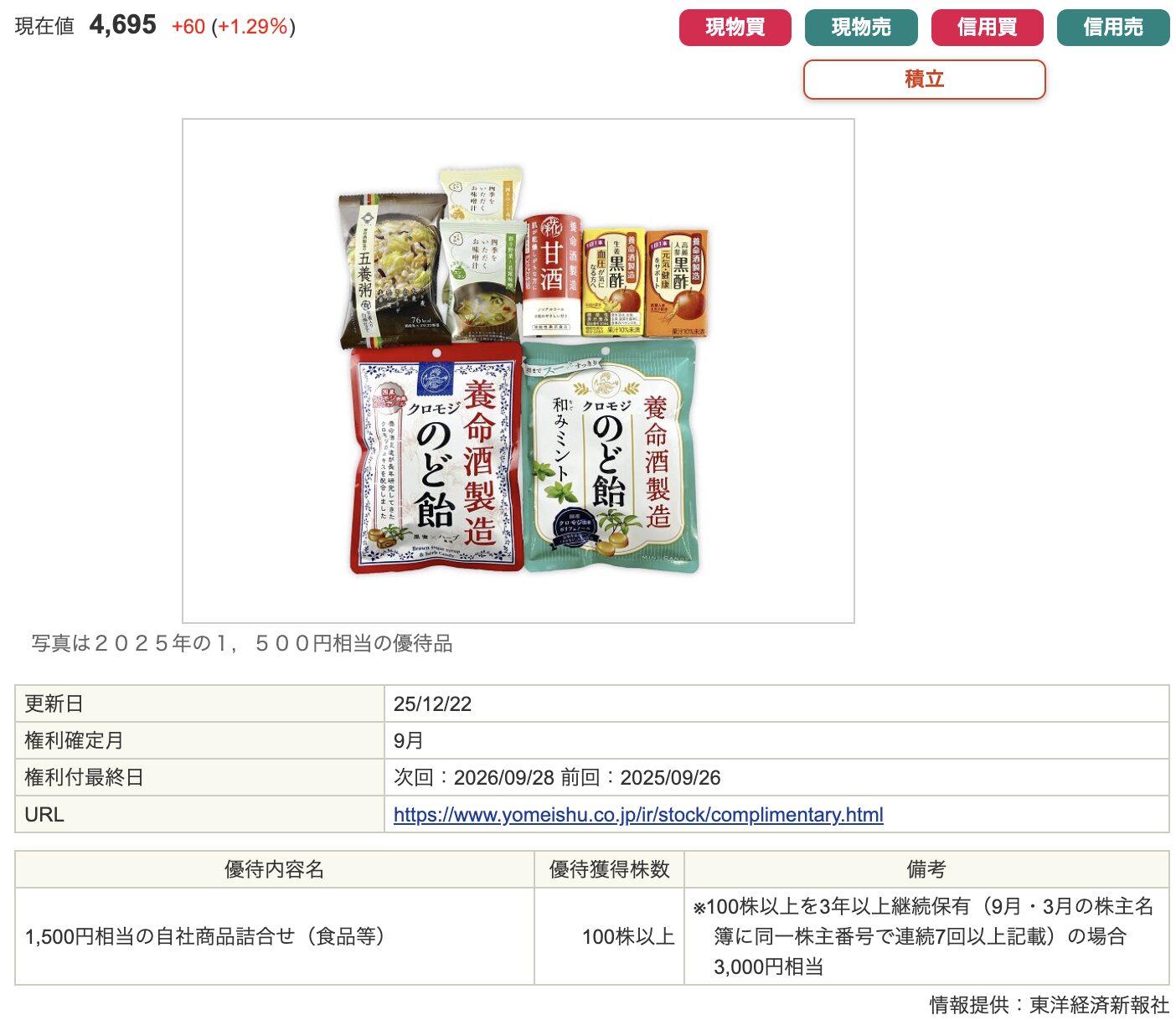 4. 各銘柄のページから、株主優待の詳細情報が確認できます。