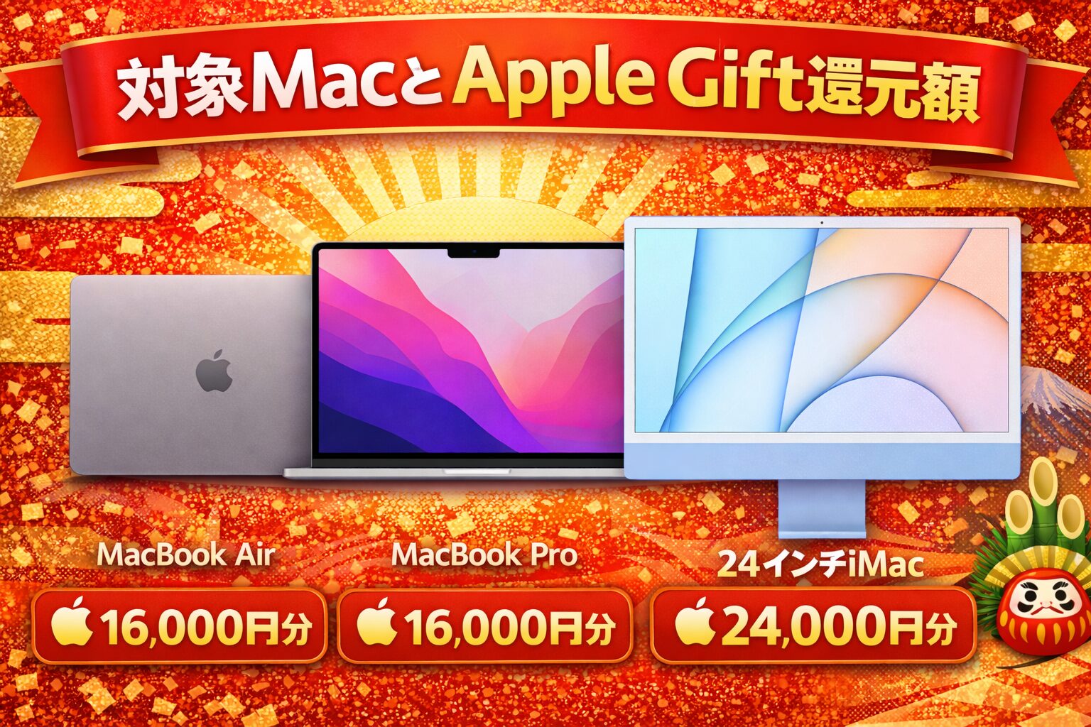 高額になりやすいMacだからこそ、初売りによる還元の恩恵は大きく、年始の購入タイミングとして非常に価値があります。