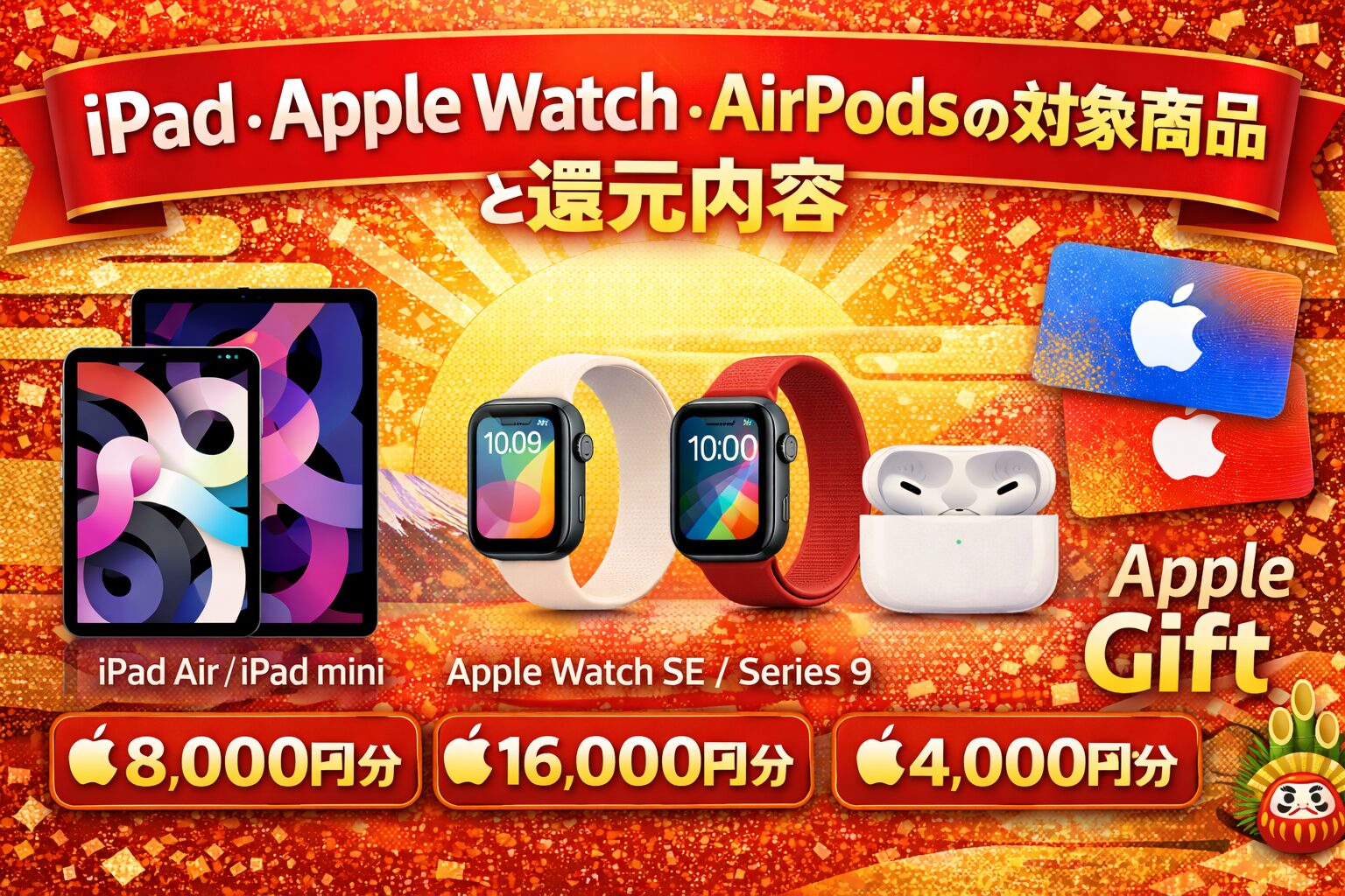 Apple 初売り 2026年では、Apple Giftが還元されますが、