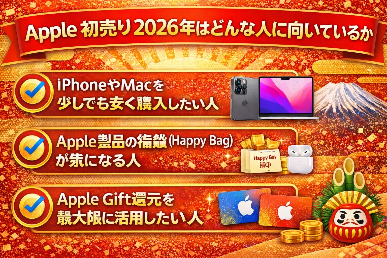初売りを待つことでApple Giftという確実な還元を受けられるため、購入タイミングとして合理的です。