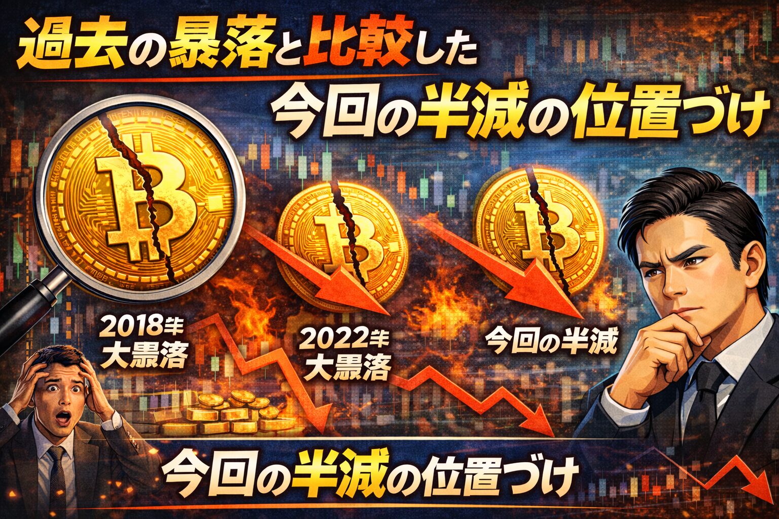次章では、過去の大規模下落と比較しながら、今回の半減がどの位置づけにあるのかを整理します。
