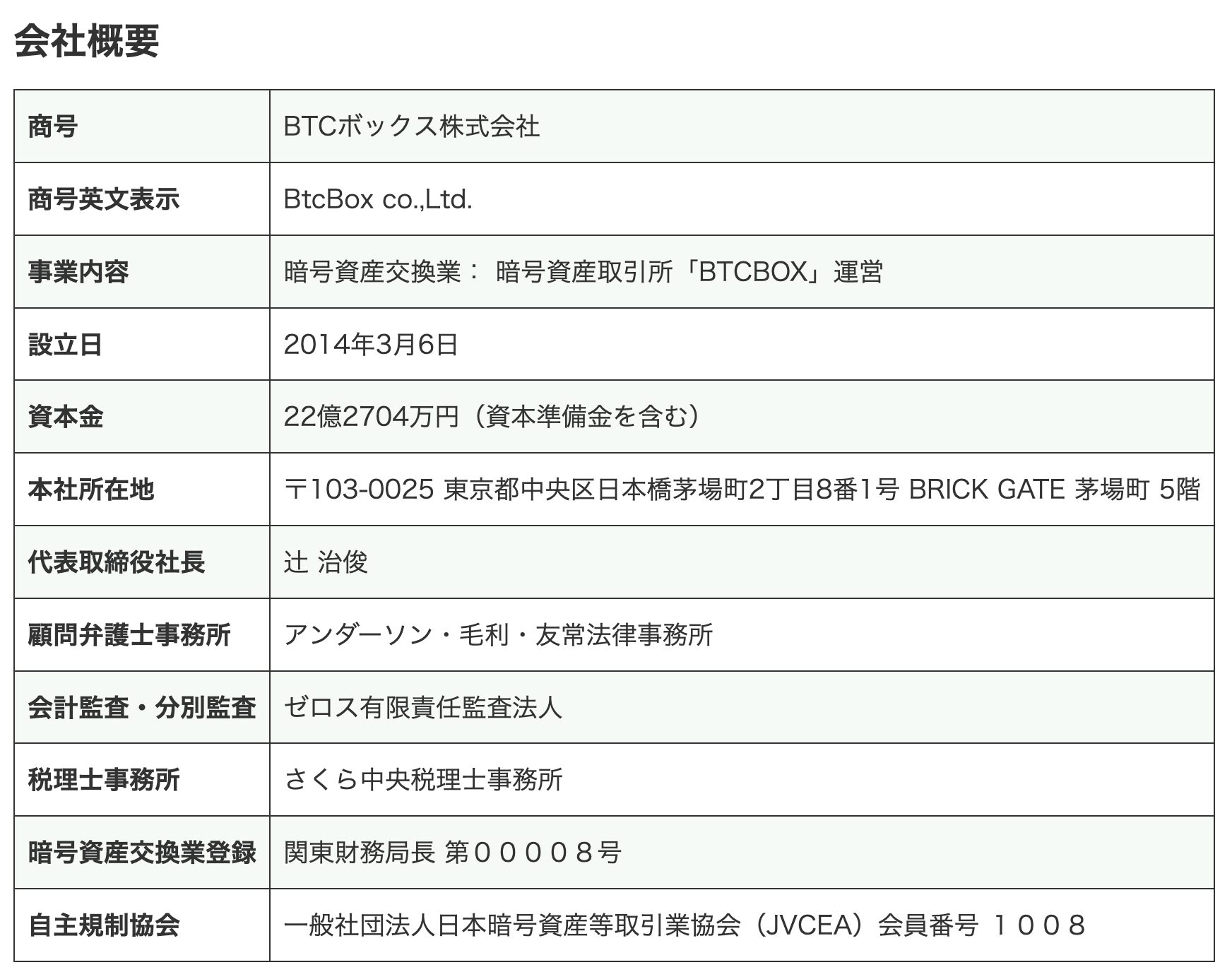 BTCBOXを運営するのは、東京都中央区日本橋に本社を置く BTCボックス株式会社 です。