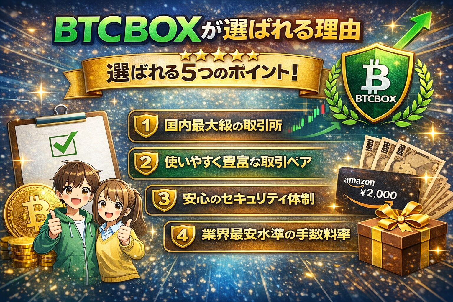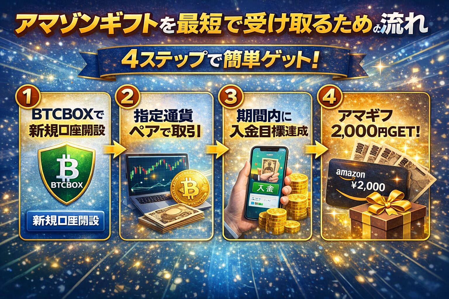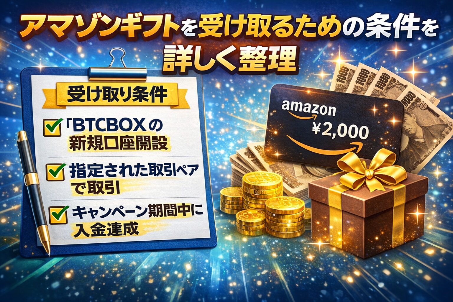 BTCBOXが実施しているアマゾンギフト2,000円付与キャンペーンは、暗号資産の取引をこれから始める人にとって非常に参加しやすく、再現性が高い内容となっています。