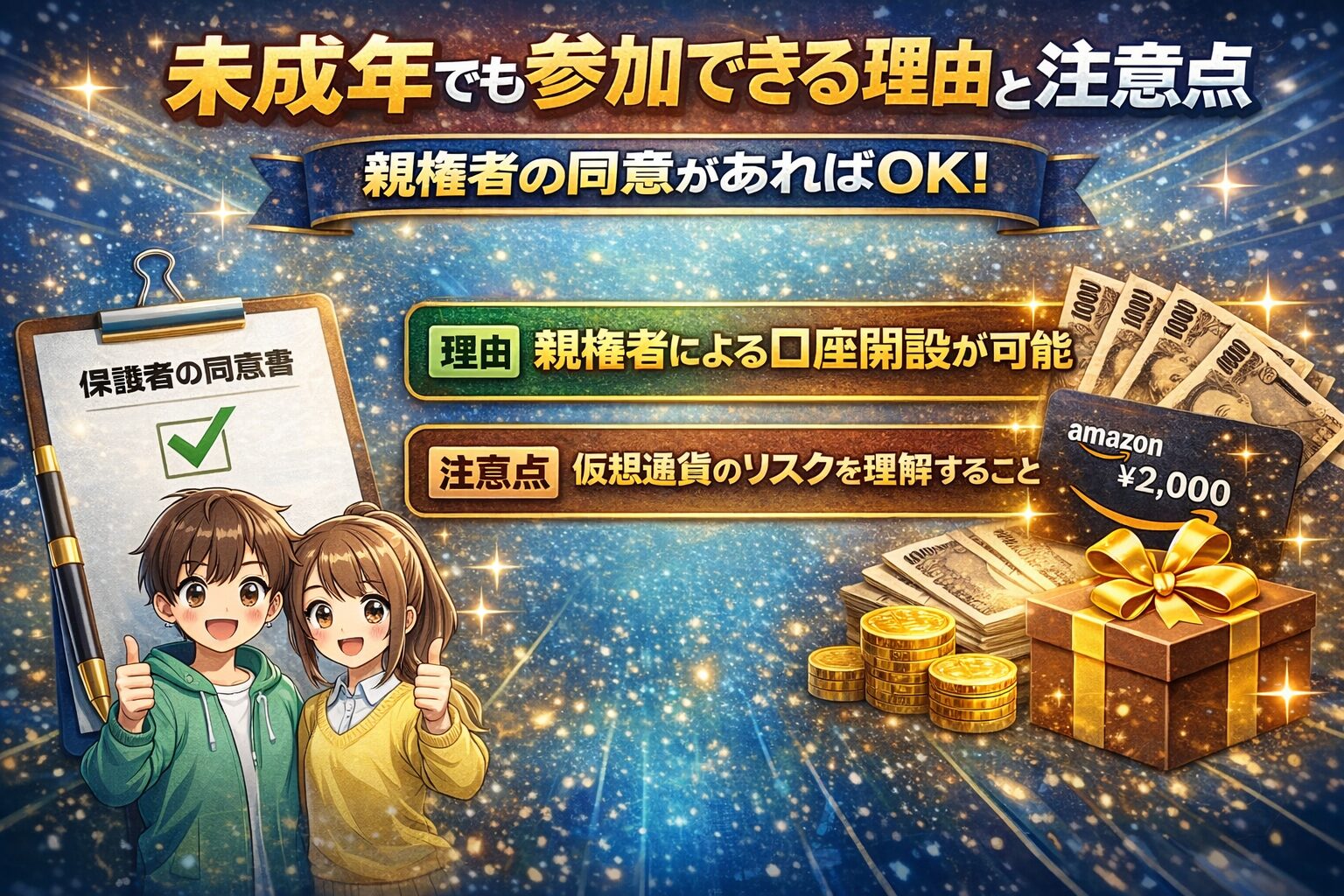 暗号資産取引所の多くは未成年の口座開設を原則禁止していますが、BTCBOXは「親権者が取引主体になる」という仕組みにより、親子で参加できる珍しいケースに該当します。