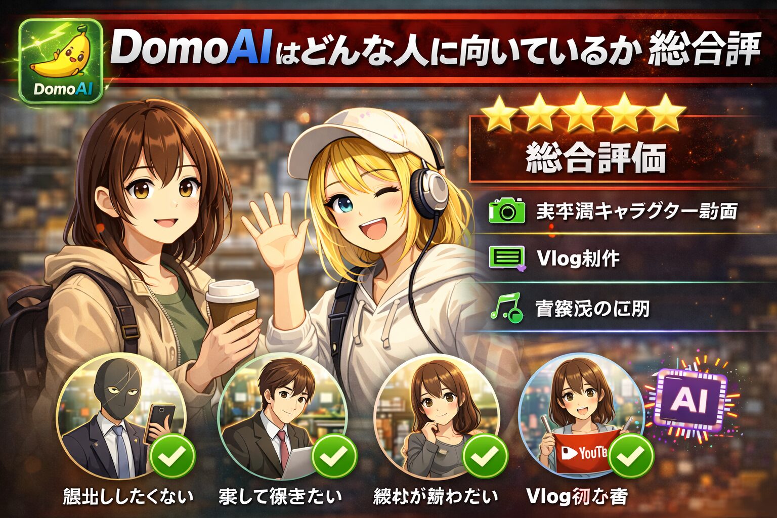 DomoAIの最大の魅力は、顔出しをせずに実写Vlogを成立させられる点です。