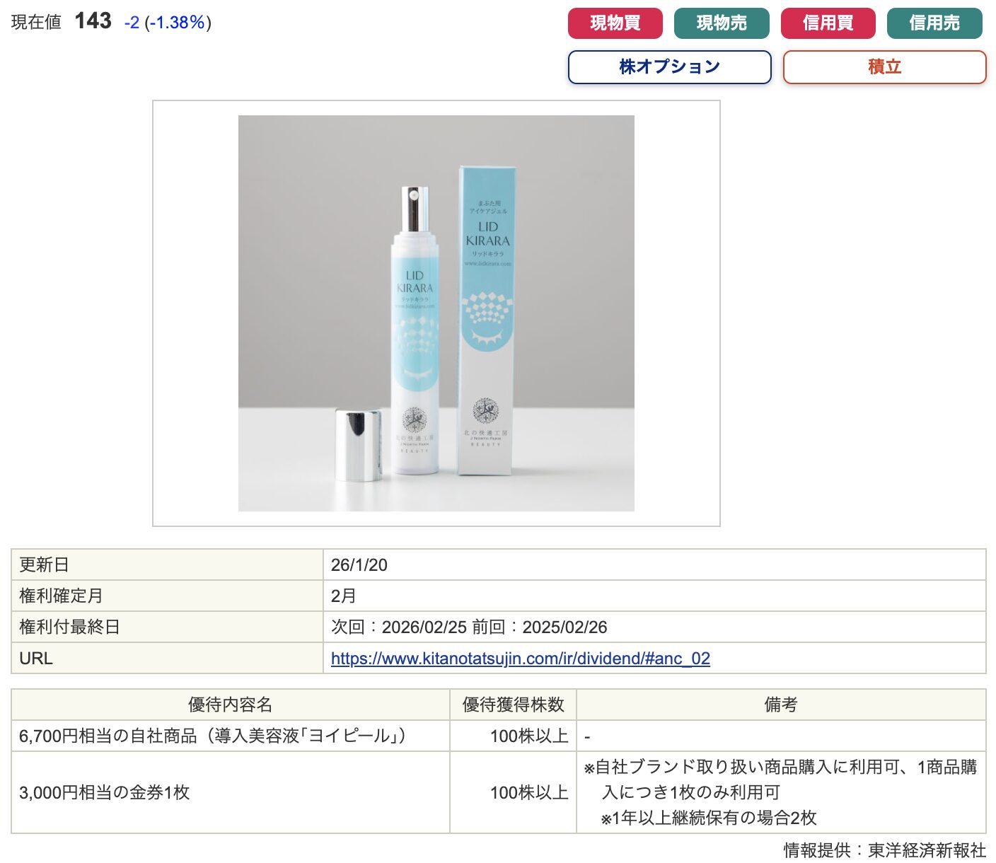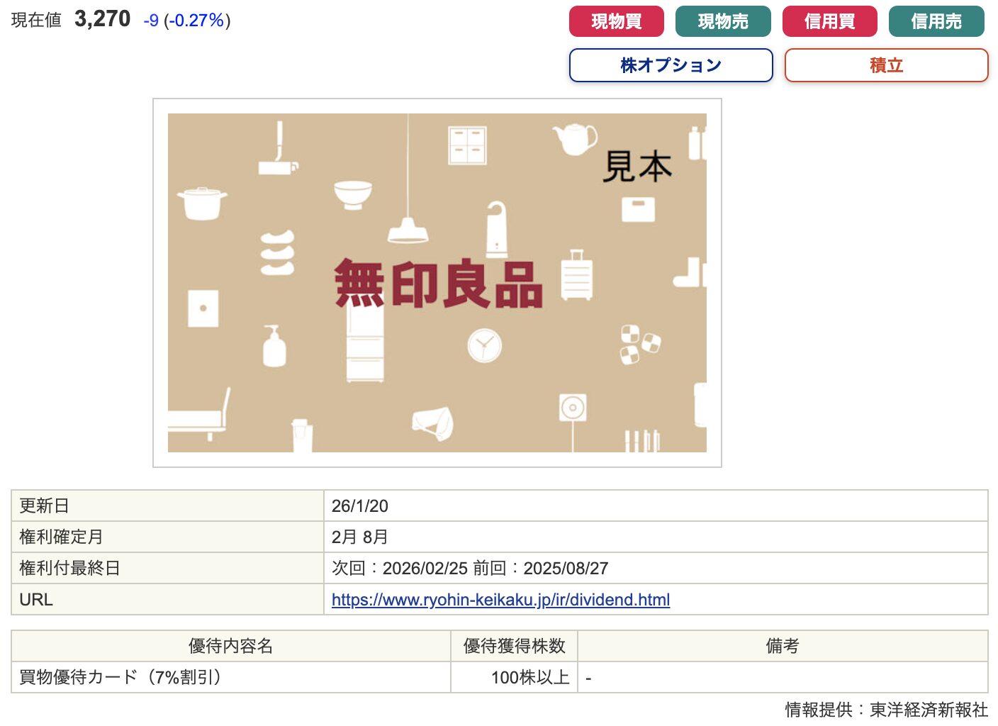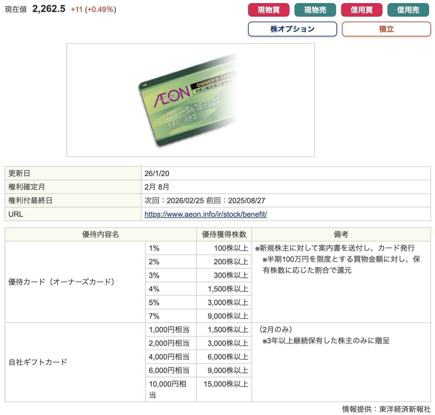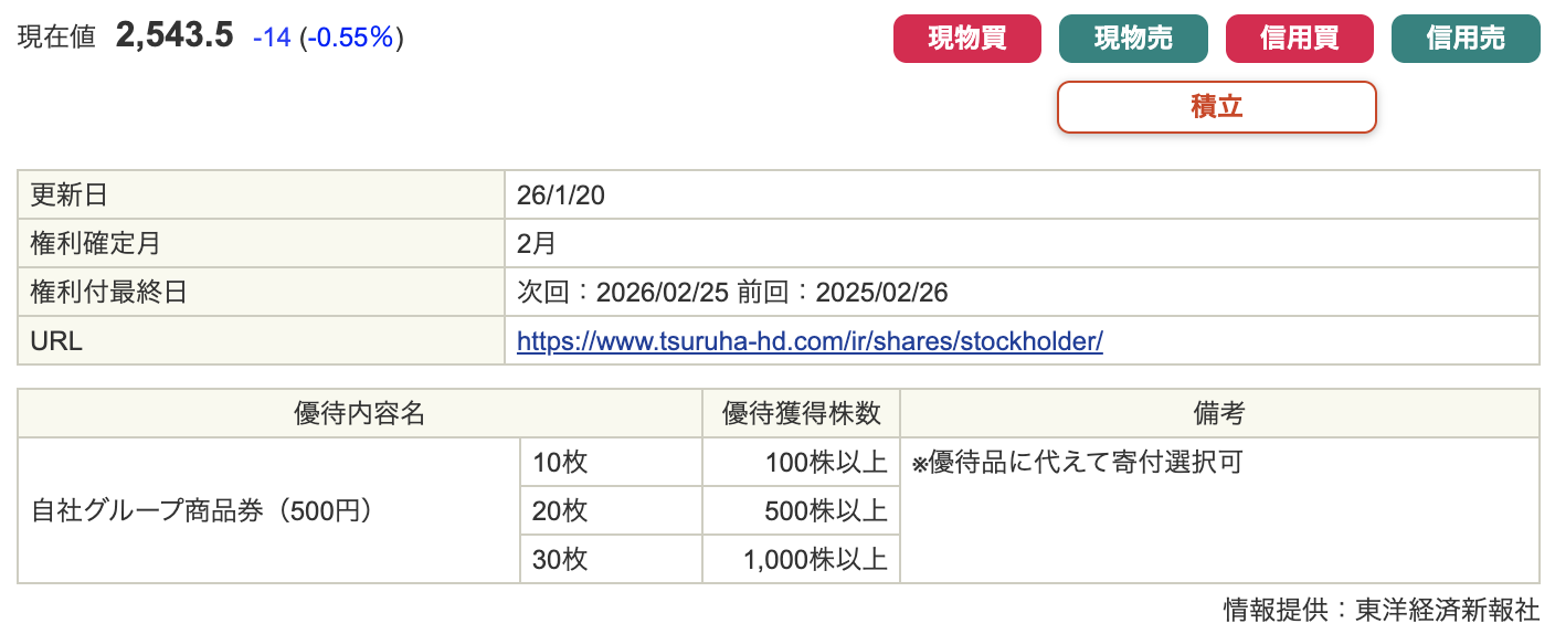 この日の取引終了時点で株式を保有していることが、株主優待を受け取る条件です。