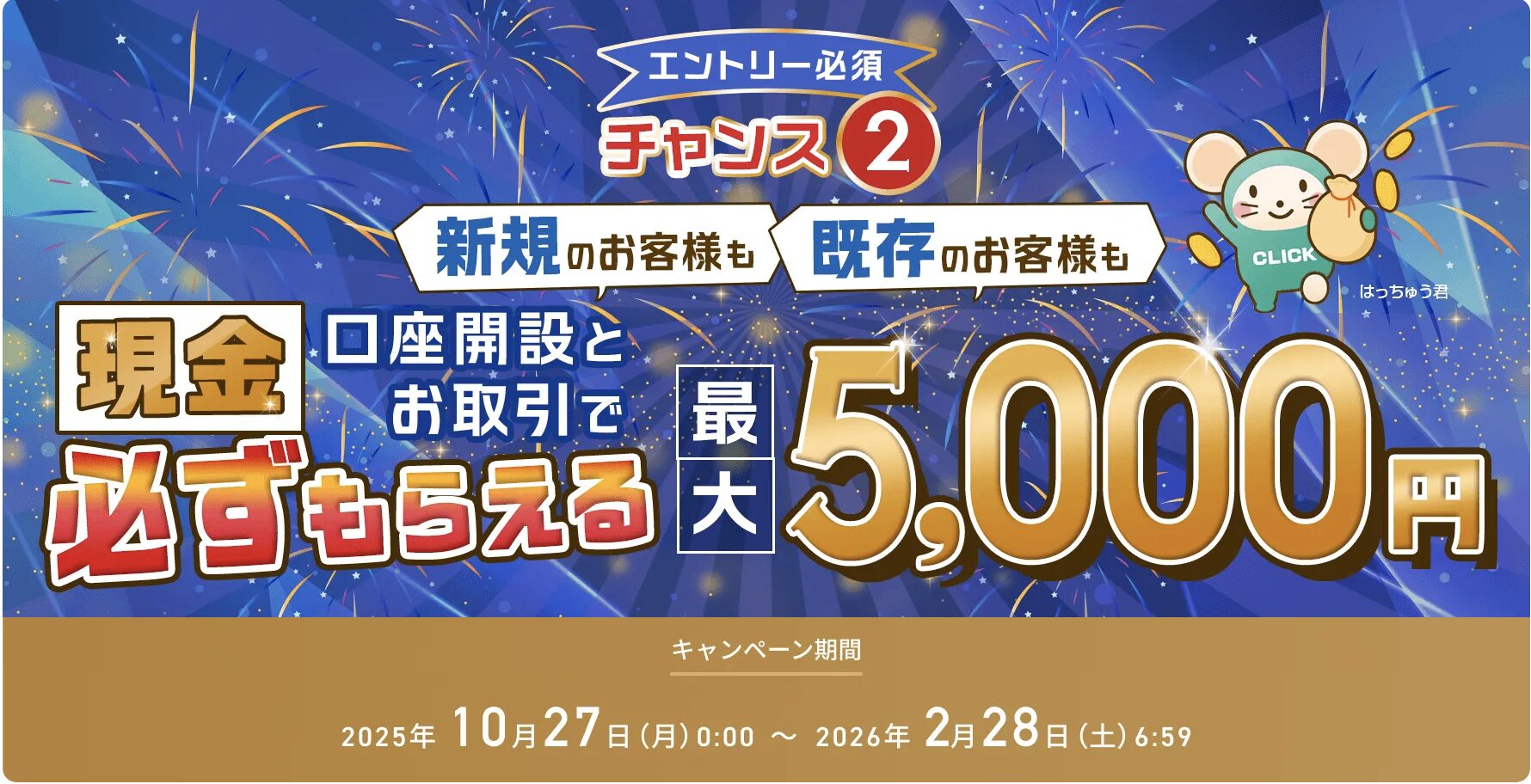 GMOクリック証券は2025年も複数のキャンペーンを公式に実施しています。