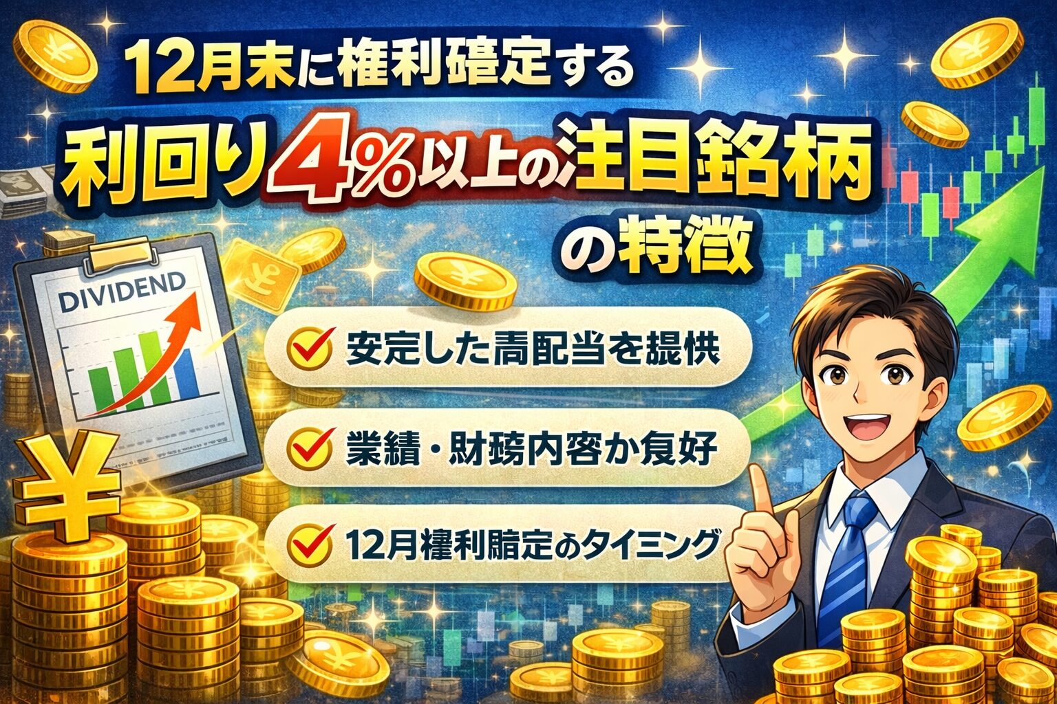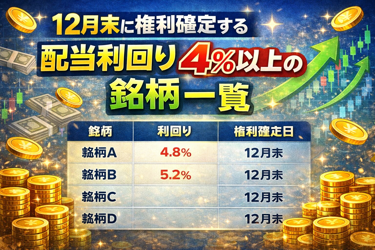 12月末に権利確定し、利回り4%以上を狙える銘柄は、年末の資産形成において有力な選択肢です。