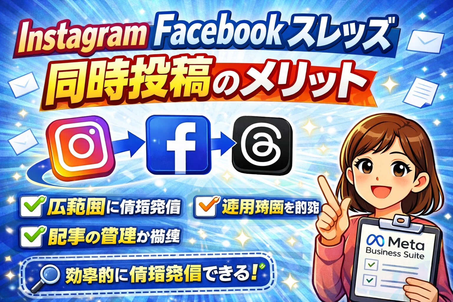 Instagram facebook スレッズを同時投稿する方法!公式機能で安全に時短運用する方法を徹底整理