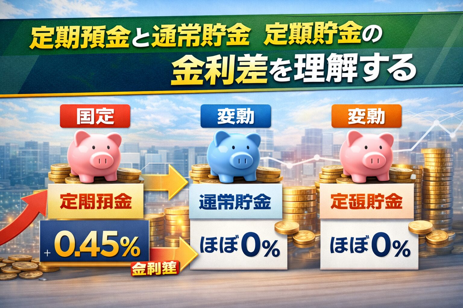 定期預金と通常貯金 定額貯金の金利差を理解する