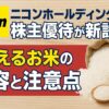 該当する株主には、保有株数に応じて内容が異なる優待品が提供されます。