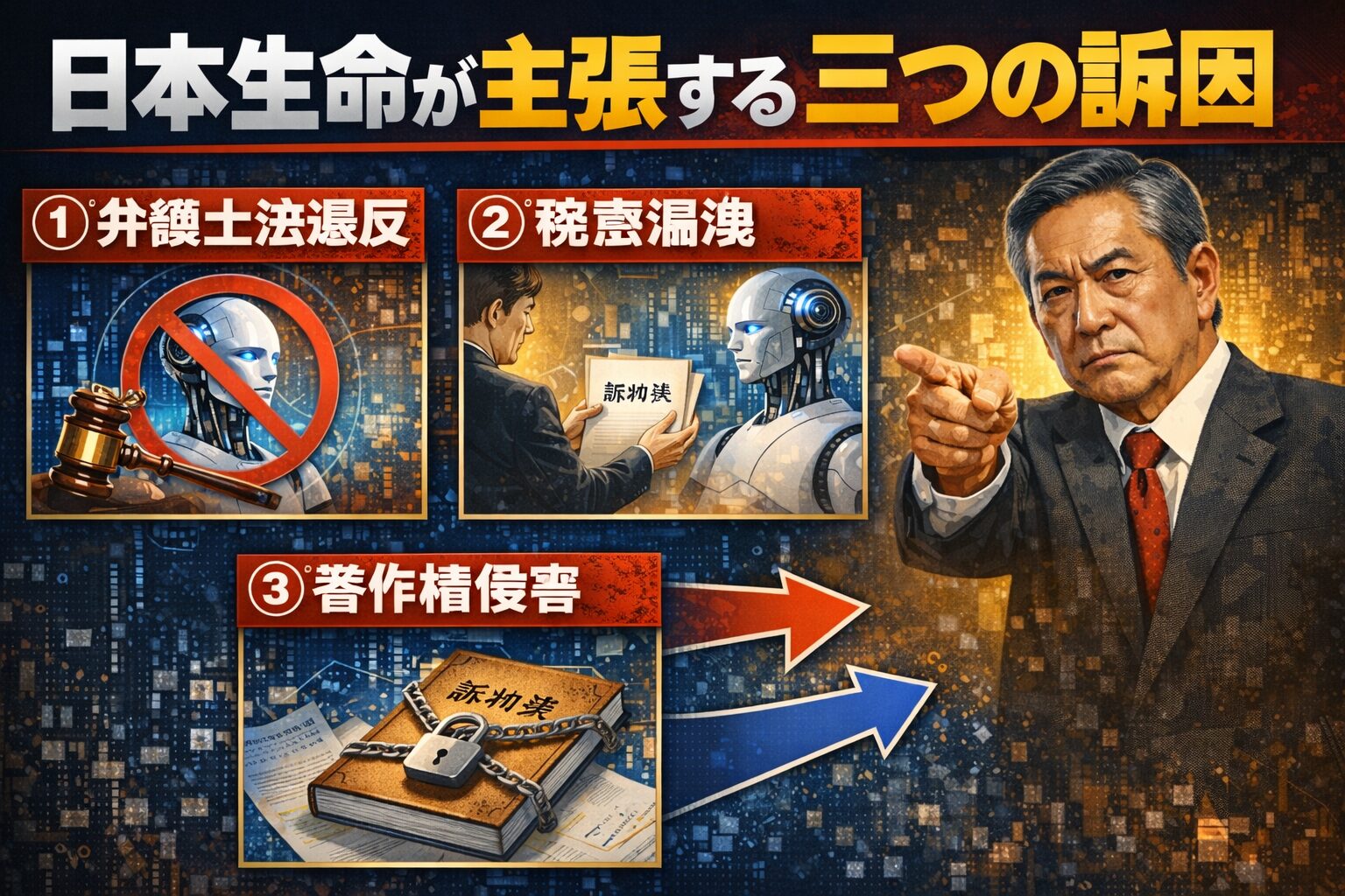 日本生命の米国法人がOpenAIを提訴した訴状では、主に三つの法的根拠が示されています。