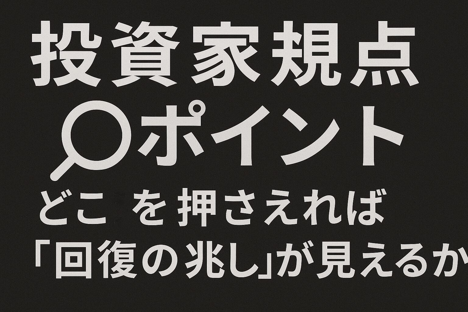 投資家は「悪材料のピークを過ぎたか」を見極め、改革成果が数値で表れたタイミングを狙うのが得策です。