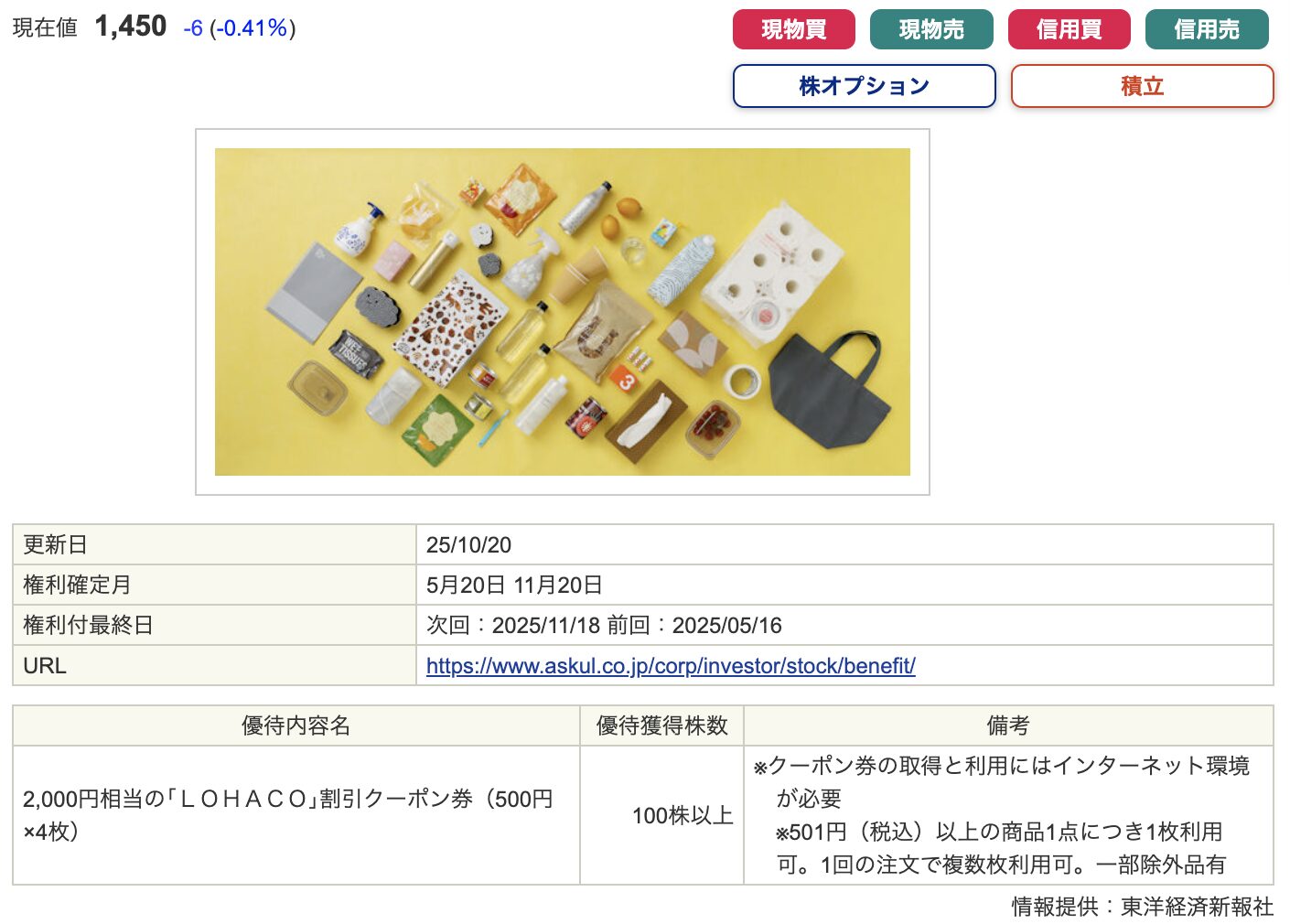 優待ではLOHACOで使えるクーポン券が配布され、日用品や食品を購入する際に利用できます。