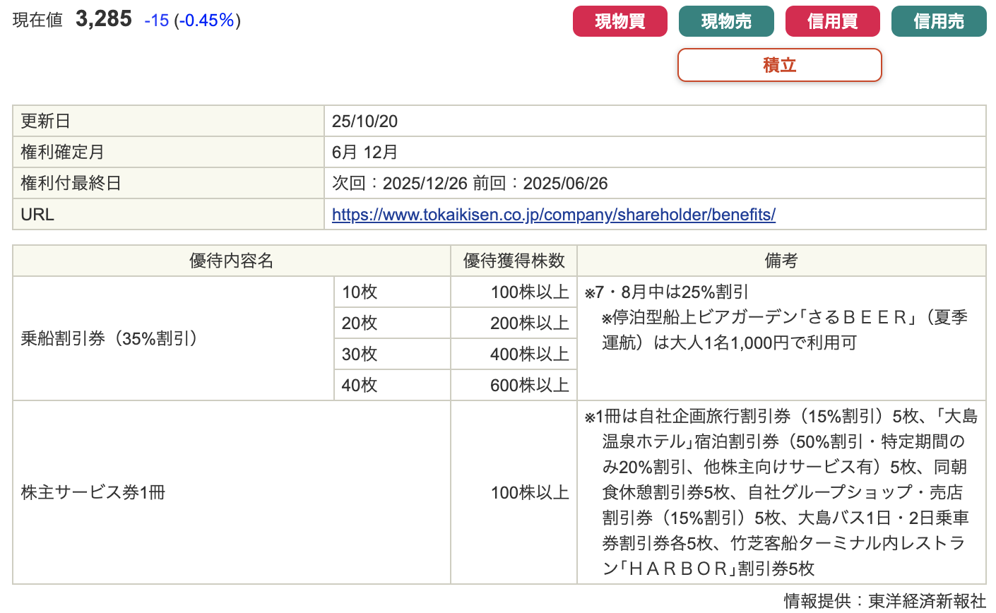 株主優待では、乗船運賃5割引券やグループホテルの割引券が贈呈され、家族旅行や離島観光を楽しむ人に好評です。