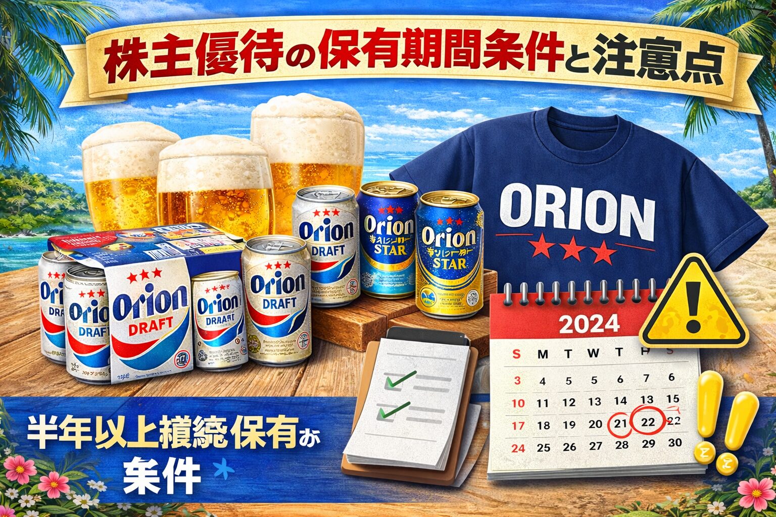 オリオンビールの株主優待を検討するうえで、特に重要なのが保有期間の条件です。