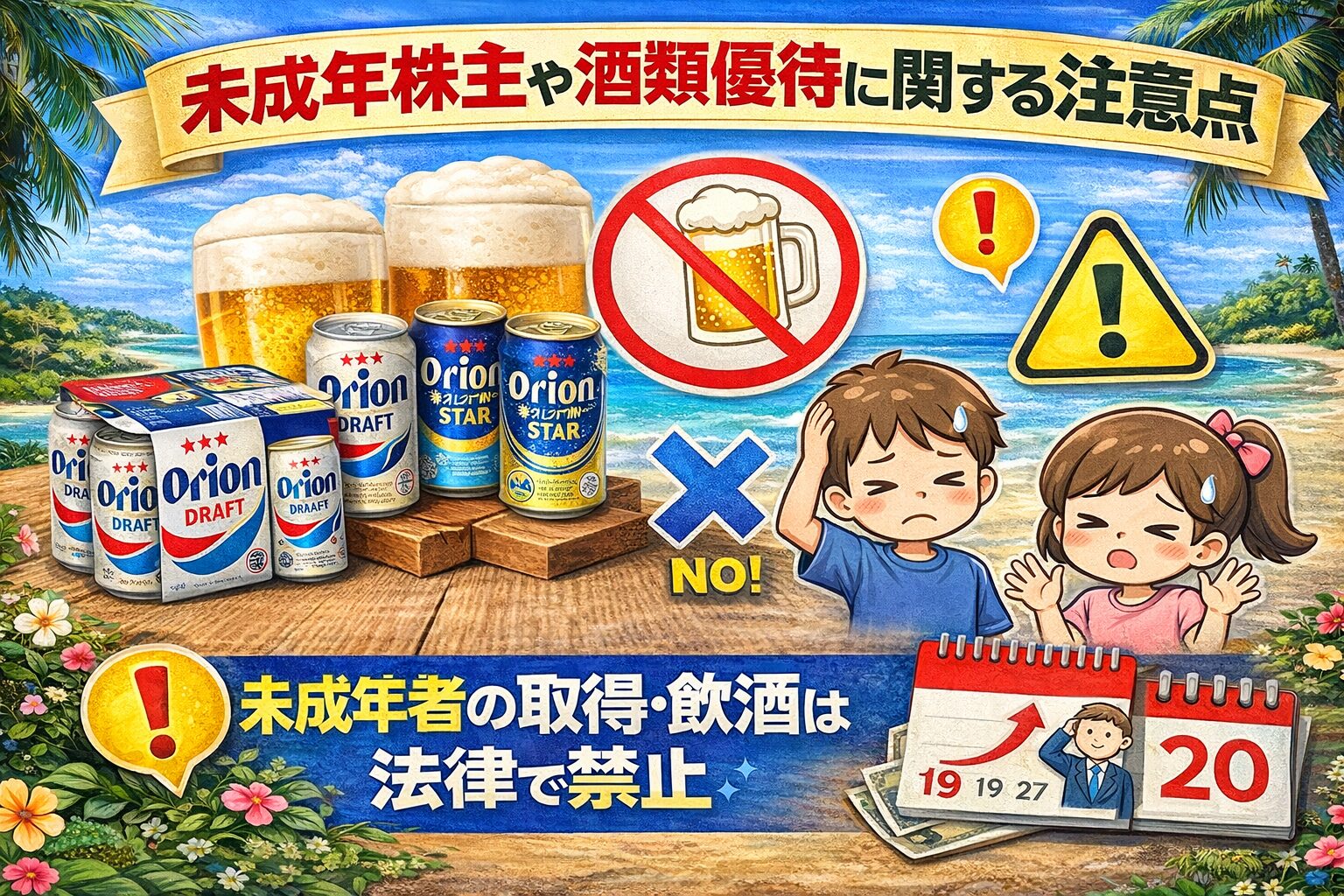 オリオンビールの株主優待は酒類を含む内容であるため、年齢に関する制限があります。