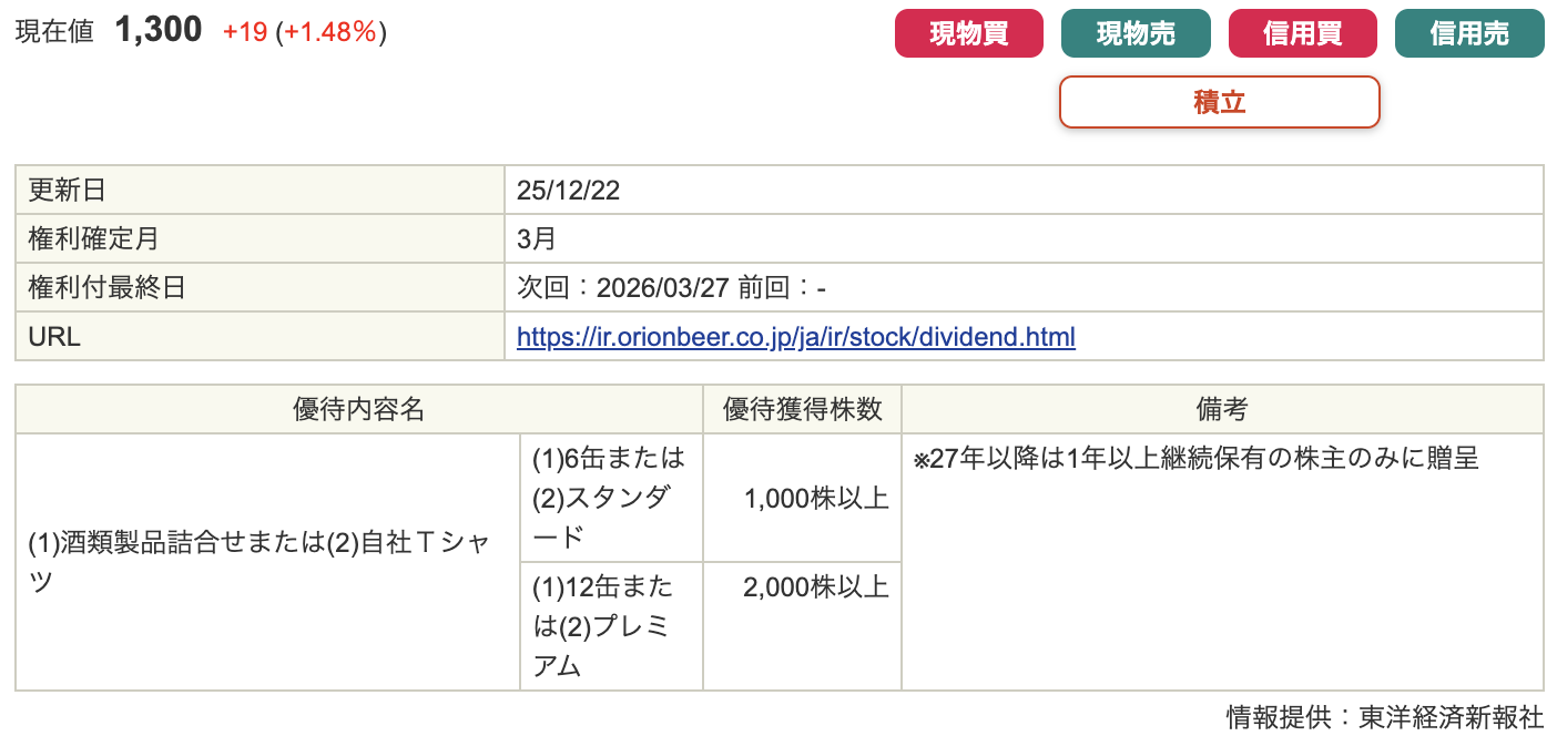オリオンビールの株主優待は、初回取得のしやすさと、長期保有を促す仕組みの両立が図られています。