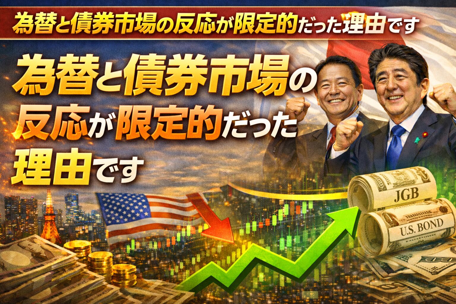 これは短期的な材料視ではなく、選挙結果が中長期の経済運営に与える影響を市場が即座に評価した結果です。