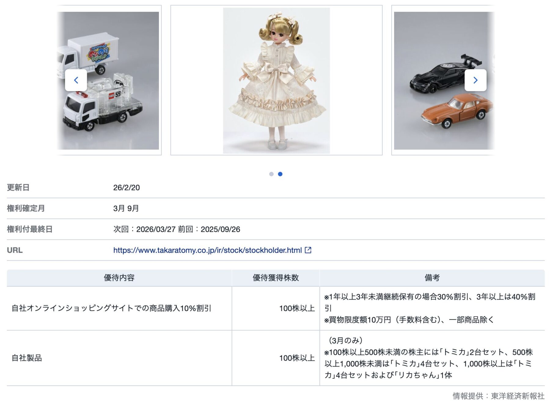 タカラトミー株主優待の本質は次の三点に集約されます。