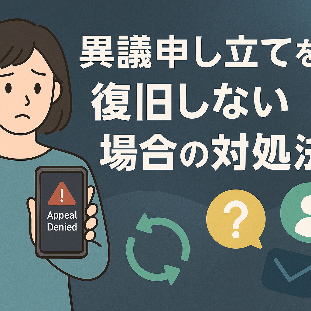- 異議申し立てが通らなくても「再申請」「ヘルプセンター」「レビュー経由」など複数ルートがある