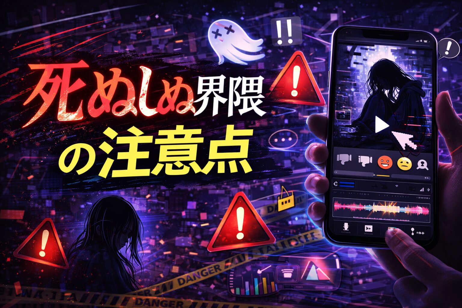 このように死ぬしぬ界隈の動画は簡単に制作できる一方で、投稿時には表現や権利関係に注意する必要があります。