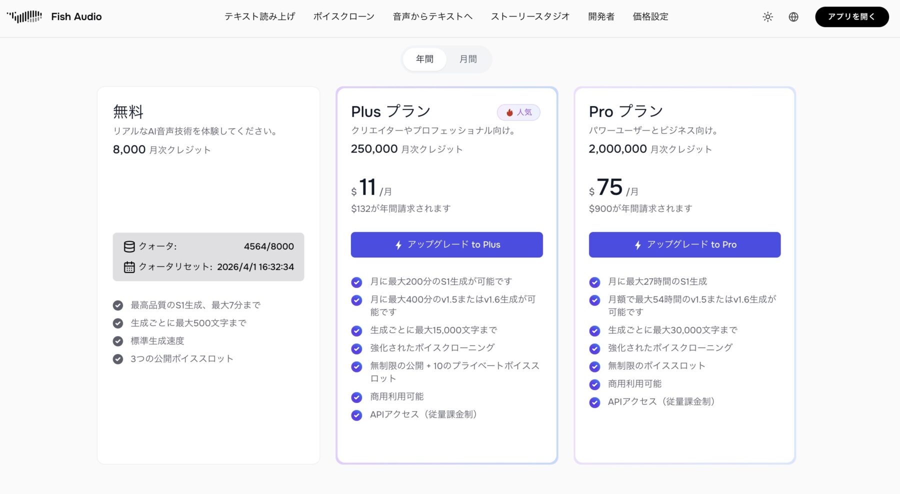 無料プランでは商用利用が制限されている場合もあり、収益化を行う場合は有料プランが必要になることがあります。