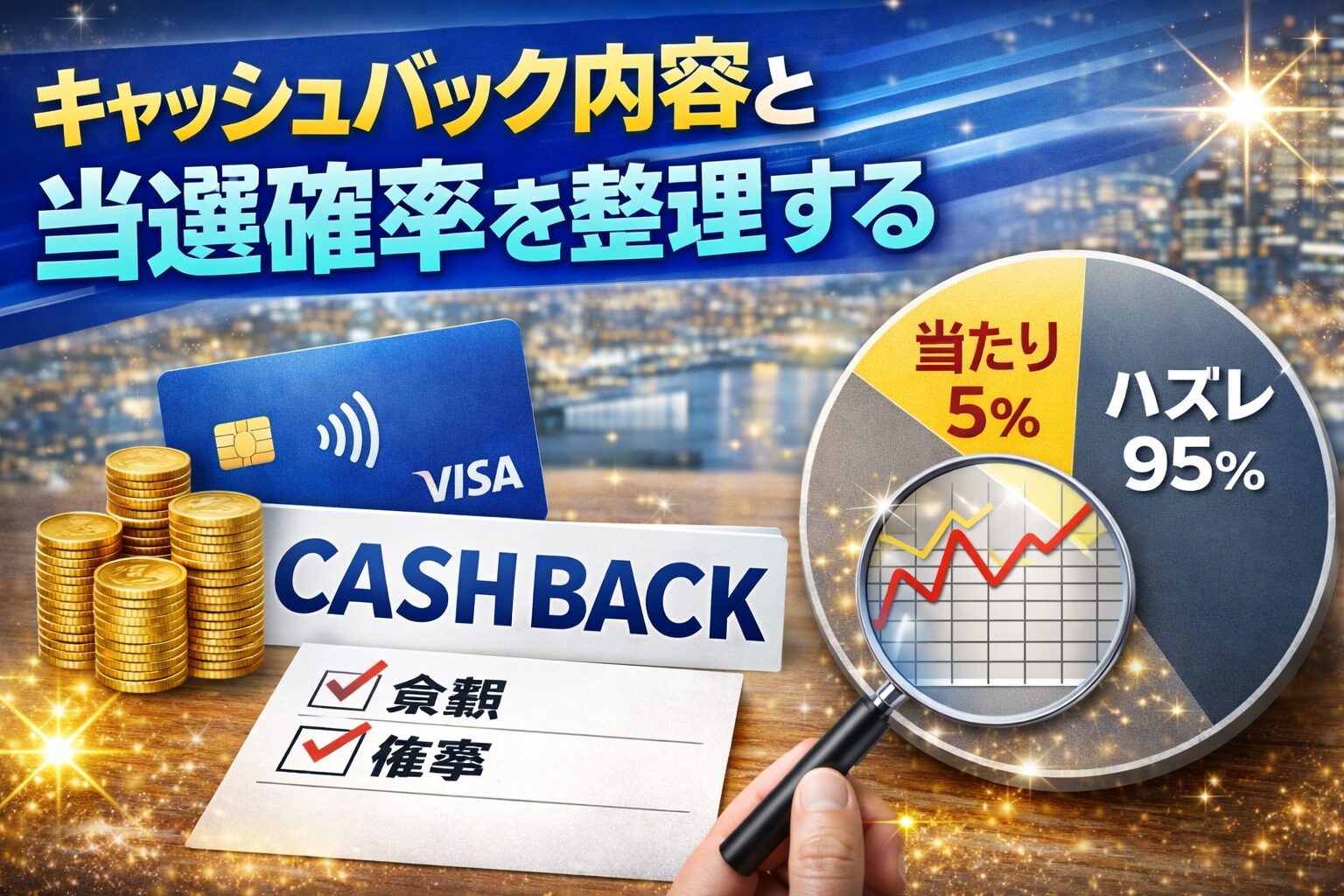 キャッシュバック内容と当選確率を整理すると、タッチでVisa割は「高額還元を狙うキャンペーン」というより、「確実に得を積み重ねるキャンペーン」と言えます。