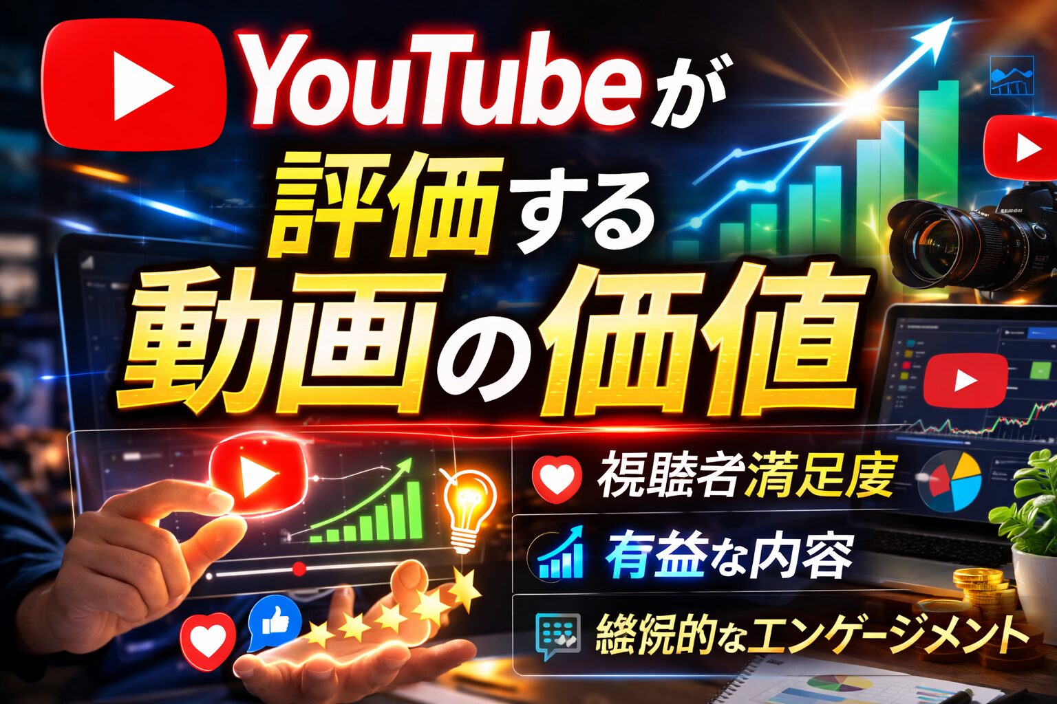 YouTubeは視聴者満足度を中心に評価されるプラットフォームであるため、価値のあるコンテンツを提供するチャンネルは長期的に評価されやすくなります。