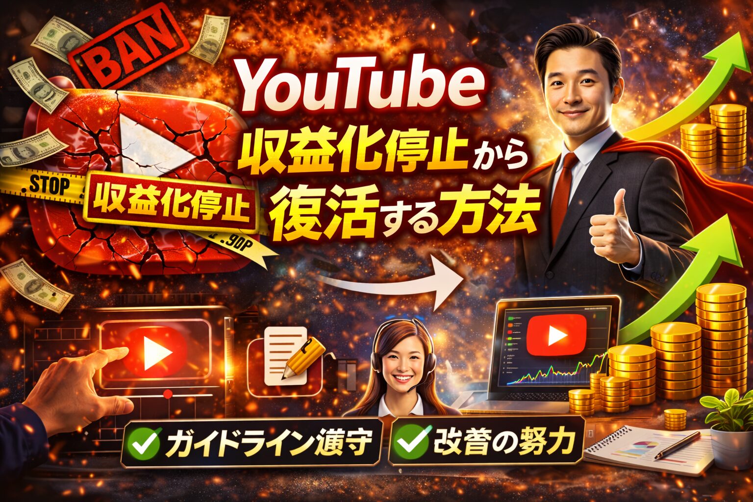 YouTube収益化停止は、多くのクリエイターにとって大きな問題ですが、その仕組みを理解すればリスクを大きく下げることができます。